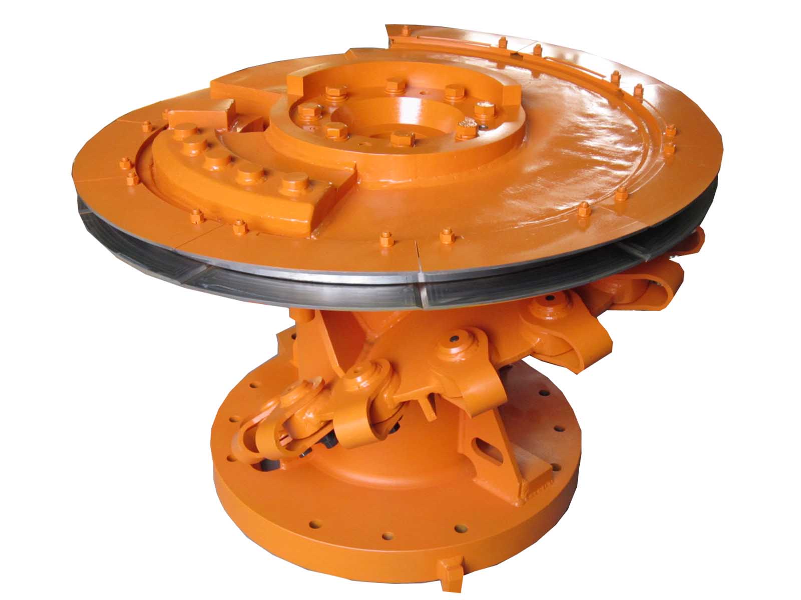 高線吐絲機(jī)為臥式結(jié)構(gòu),位于精軋機(jī)后控制冷卻線的水冷箱與冷控輥道之間。吐絲機(jī)由傳動(dòng)裝置、空心軸、吐絲盤、吐絲管、錐齒輪等零部件組成。吐絲機(jī)由一臺(tái)電機(jī)驅(qū)動(dòng),通過齒輪箱內(nèi)一對(duì)錐齒輪嚙合帶動(dòng)空心軸旋轉(zhuǎn),吐絲管安裝在吐絲盤上,吐絲盤與空心軸通過螺栓連接。吐絲機(jī)吐絲過程分析,吐絲機(jī)工作時(shí),通過吐絲機(jī)前的夾送輥由吐絲機(jī)入口導(dǎo)管送入吐絲機(jī)的空心軸內(nèi),空心軸帶動(dòng)吐絲盤和吐絲管一同旋轉(zhuǎn),使進(jìn)入空心軸內(nèi)的線材通過旋轉(zhuǎn)的吐絲管沿著吐絲管出口圓周切線方向吐出線圈,并平穩(wěn)的傾倒在風(fēng)冷輥道上,形成連續(xù)不斷的線圈。線材通過高速...